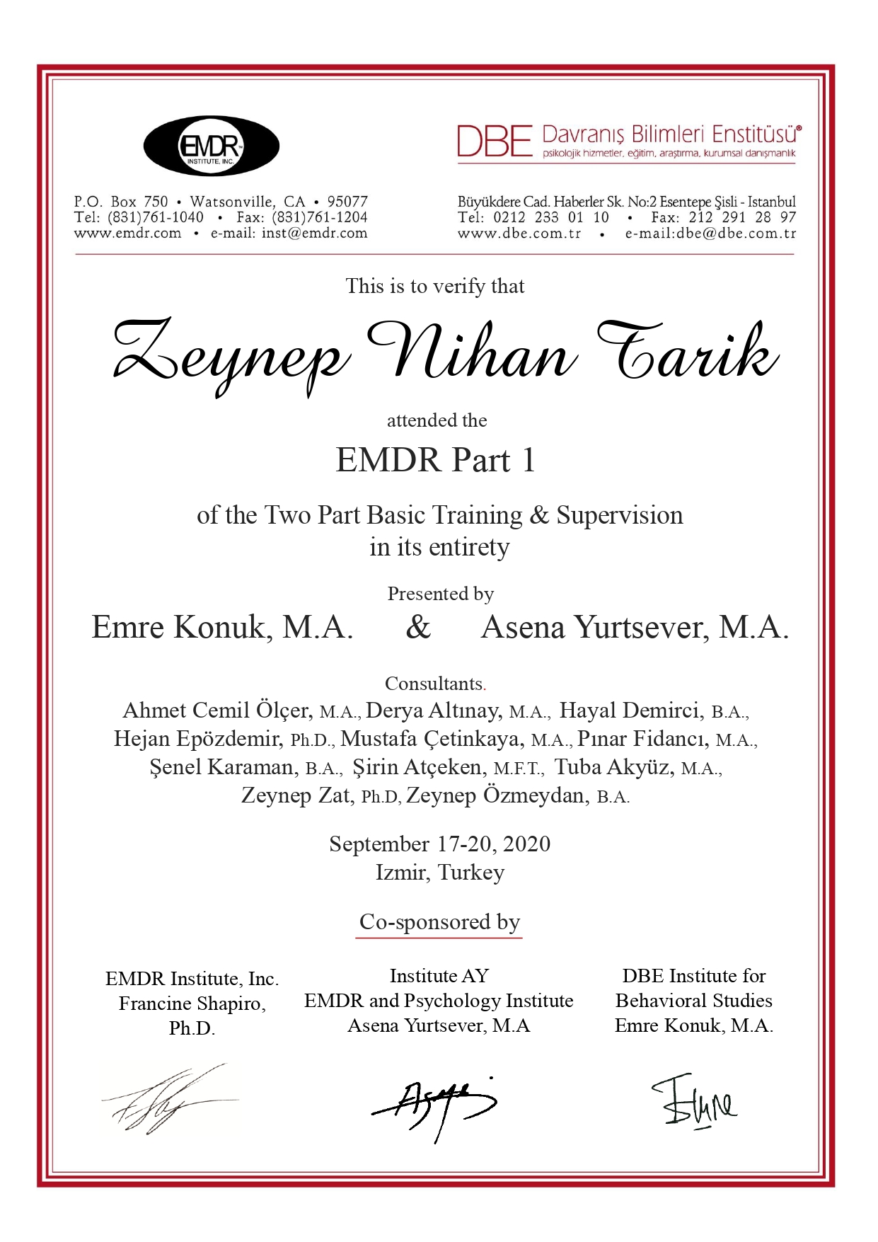 EMDR Eğitim Sertifikası I