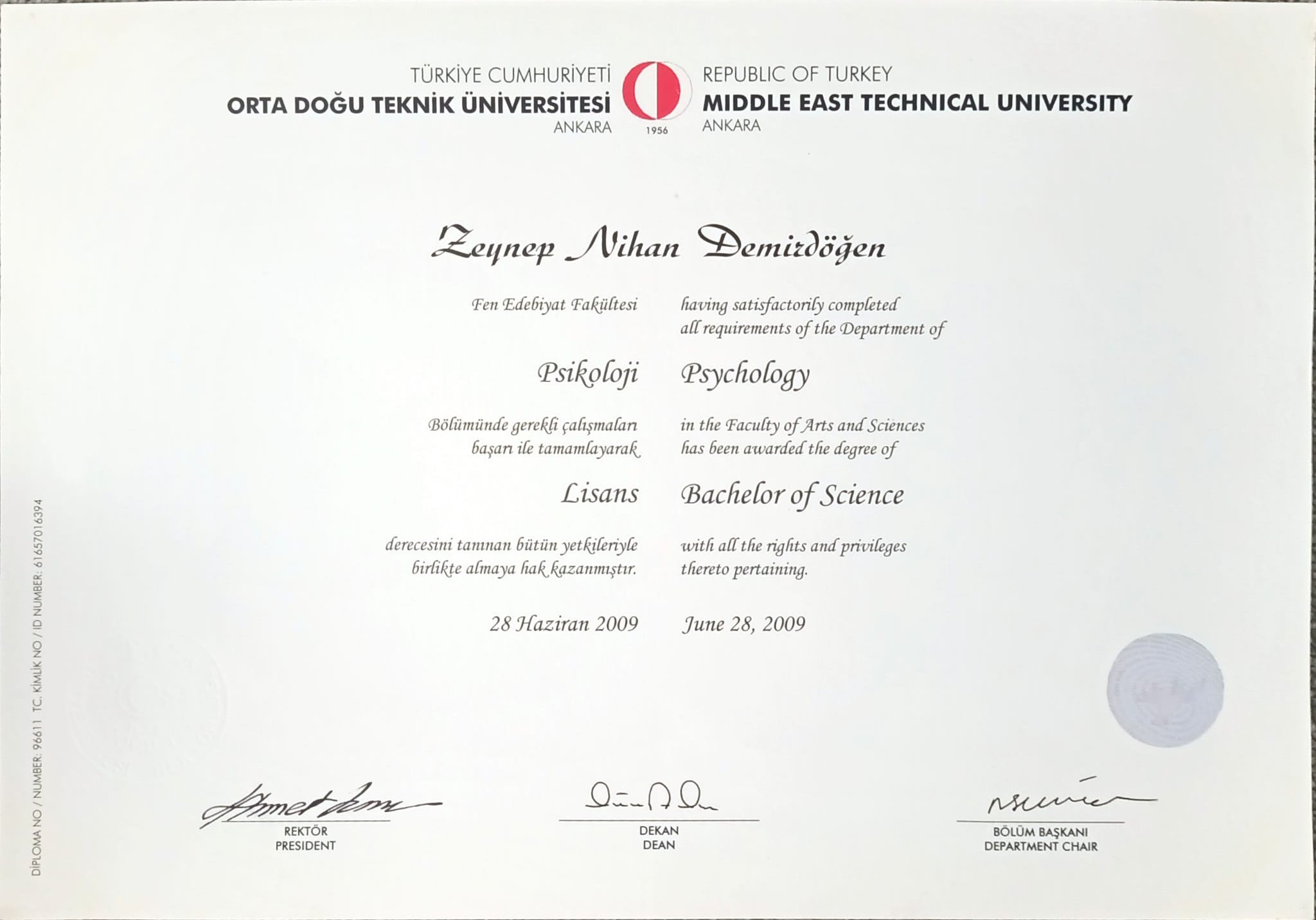ODTÜ Mezuniyet Belgesi